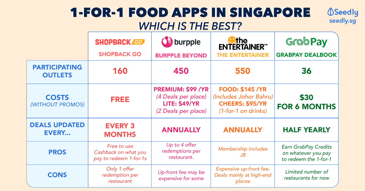 The Best 1-For-1 Food Apps In Singapore: Burpple Beyond vs Entertainer vs GrabPay Dealbook vs ShopBack GO