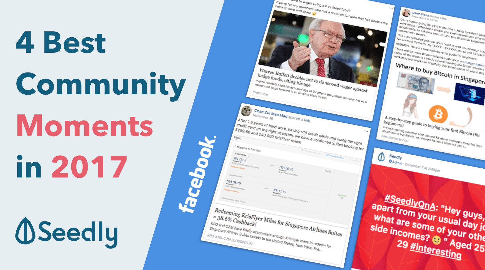 We started the Seedly facebook community in August 2017 and just 4 months in, we found that our community has asked over 800 questions and the crowd has gathered together to answer and help each other make smarter financial decisions.