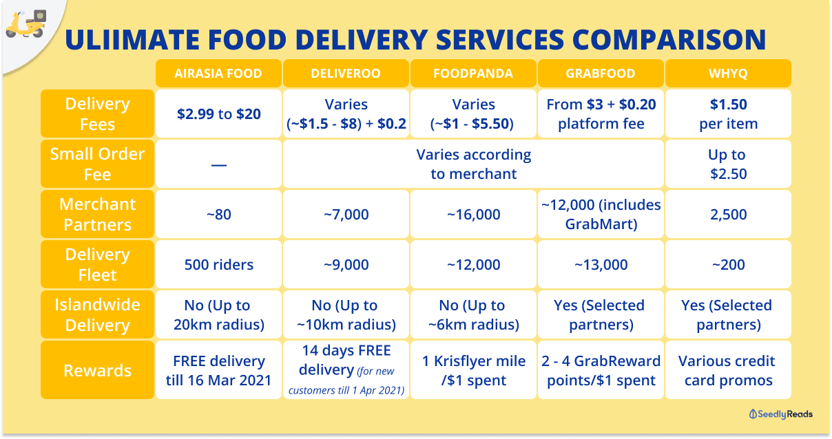 Singapore Food Delivery Services Compared (2022): airasia food vs Deliveroo vs foodpanda vs GrabFood vs WhyQ