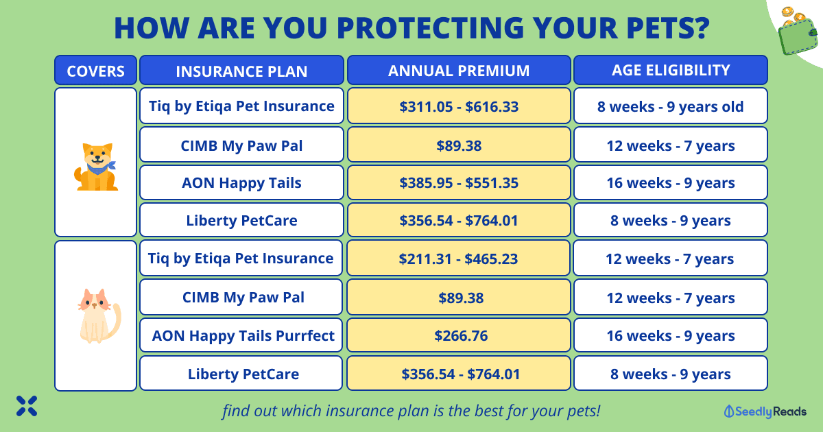 | Insurance Plans for Cats | Tiq by Etiqa Pet Insurance | CIMB My Paw Pal | AON Happy Tails | Liberty PetCare |