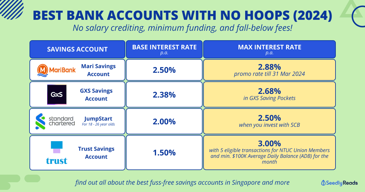 However, not everyone can fulfil such requirements. Those who do may also need a savings account separate from their primary bank account for emergency funds or simply to diversify their savings across banks. Moreover, if you are a minimalist or someone who prefers simplicity, these banks simply have far too many things to take note of.
