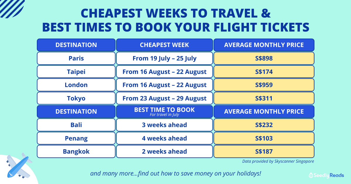 | Singapore to Seoul | 20 weeks ahead | 19 weeks ahead | S$520 |