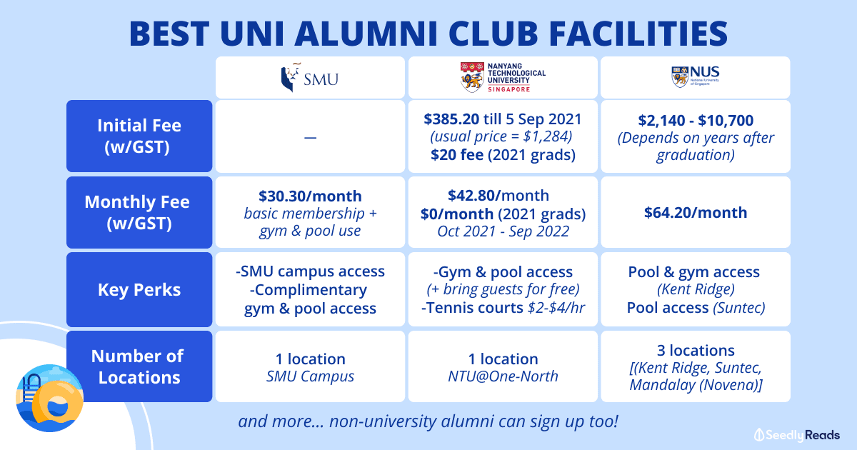 Who Has The Most Value For Money University Alumni Club Facilities? SMU vs NTU vs NUS