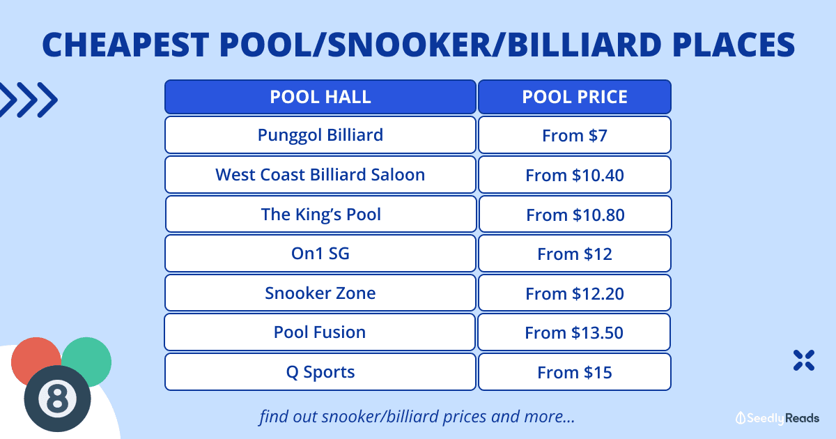 TL;DR: Cheapest Pool, Billiard Halls in Singapore