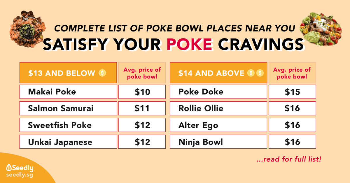 We’ve put together this comprehensive list of poke places sorted by price for your reference (and also mine), because this means I will be having poke bowls for dayssssss! (My wallet says ouch, but my soul says yes!)