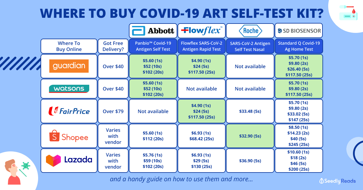 Here’s a quick price comparison and where you can buy these test kits online in Singapore:
