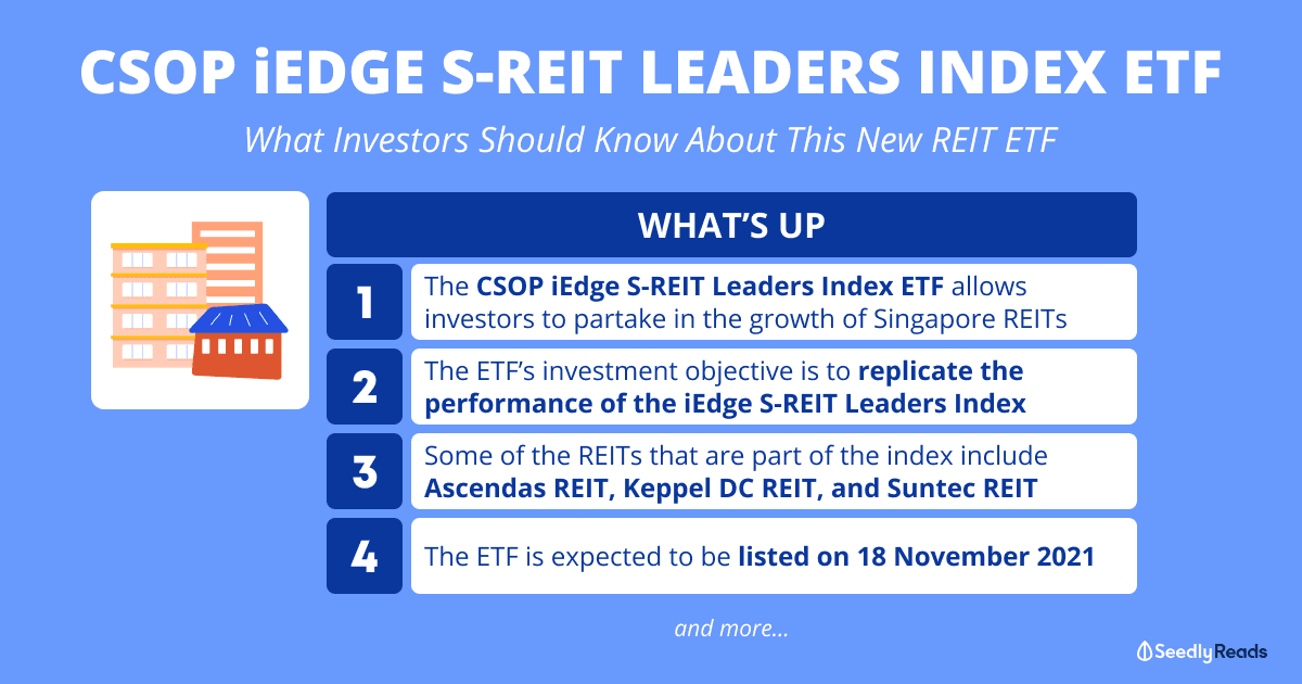 - The CSOP iEdge S-REIT Leaders Index ETF allows investors to invest in Singapore REITs easily.