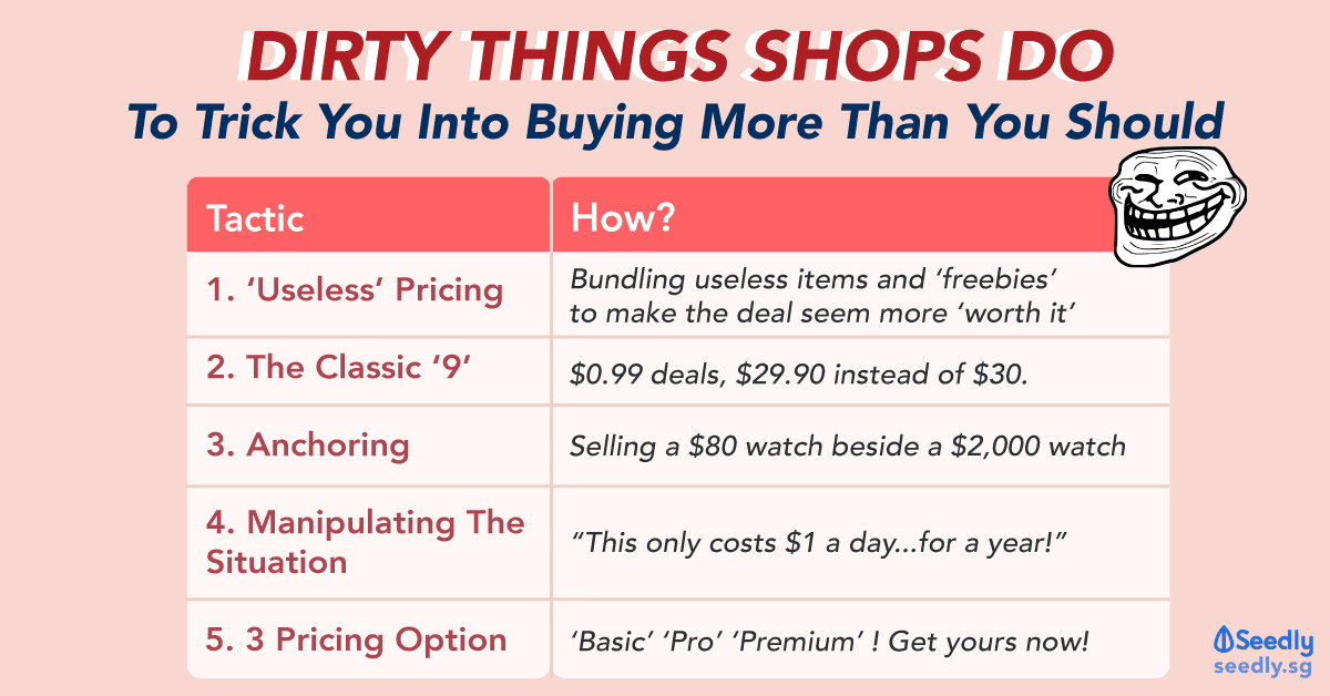 Today, we’re going to show you 5 dirty pricing tactics that we unknowingly (and sometimes also willingly) fall for.