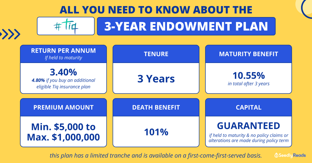 Tiq 3-Year Endowment Plan: Up to 4.80% p.a. Guaranteed Returns if Held to Maturity (2023)