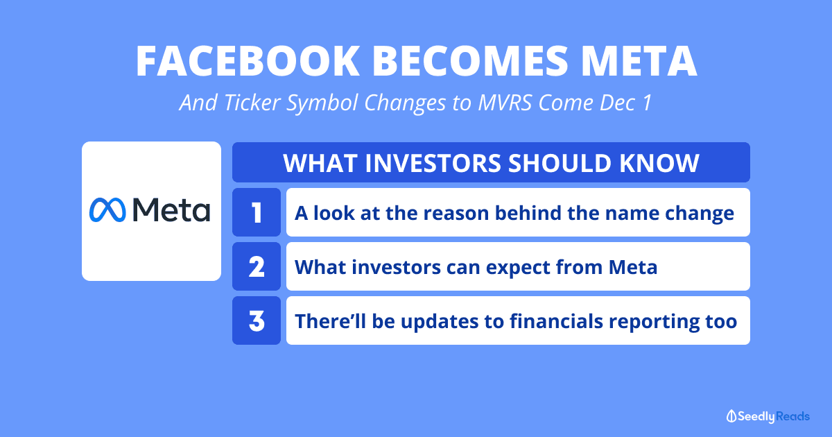 What Investors Should Know About Facebook (NASDAQ: FB) Changing Name to Meta With New Ticker Symbol MVRS