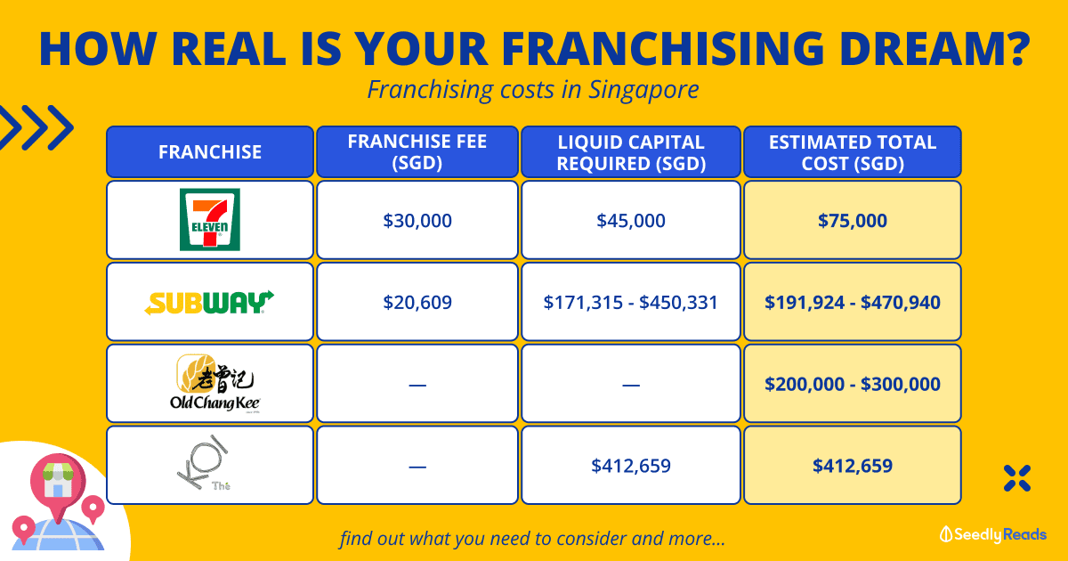 Franchise Cost Of Popular Brands: 7-11, Old Change Kee, Subway, Ya Kun, Koi and More