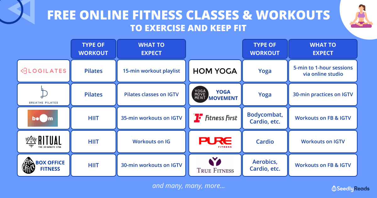 | Pure Fitness Singapore | Cardio | Various workouts on IGTV |