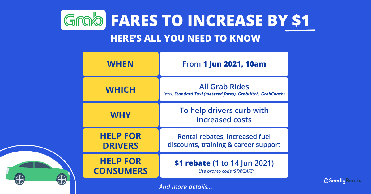 In addition to this, Grab has just announced that their base fares will be increased by $1, starting 1 June 2021, 10am.