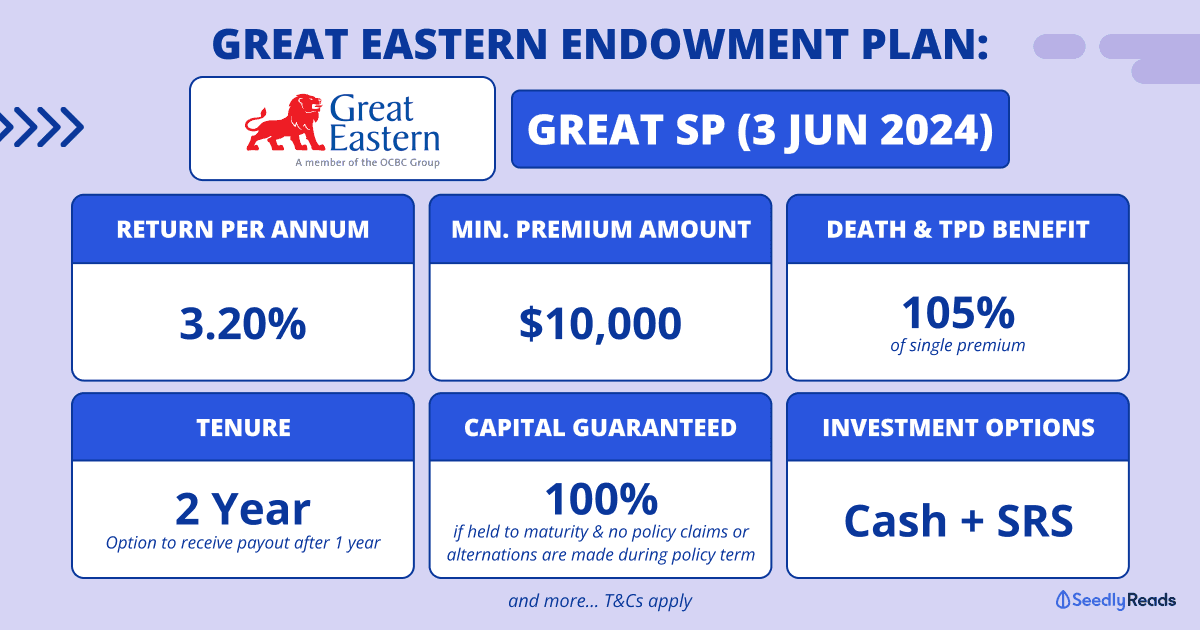 Great Eastern Endowment Plan (2024) GREAT SP: 3.20% p.a. Guaranteed Returns After 2 Years