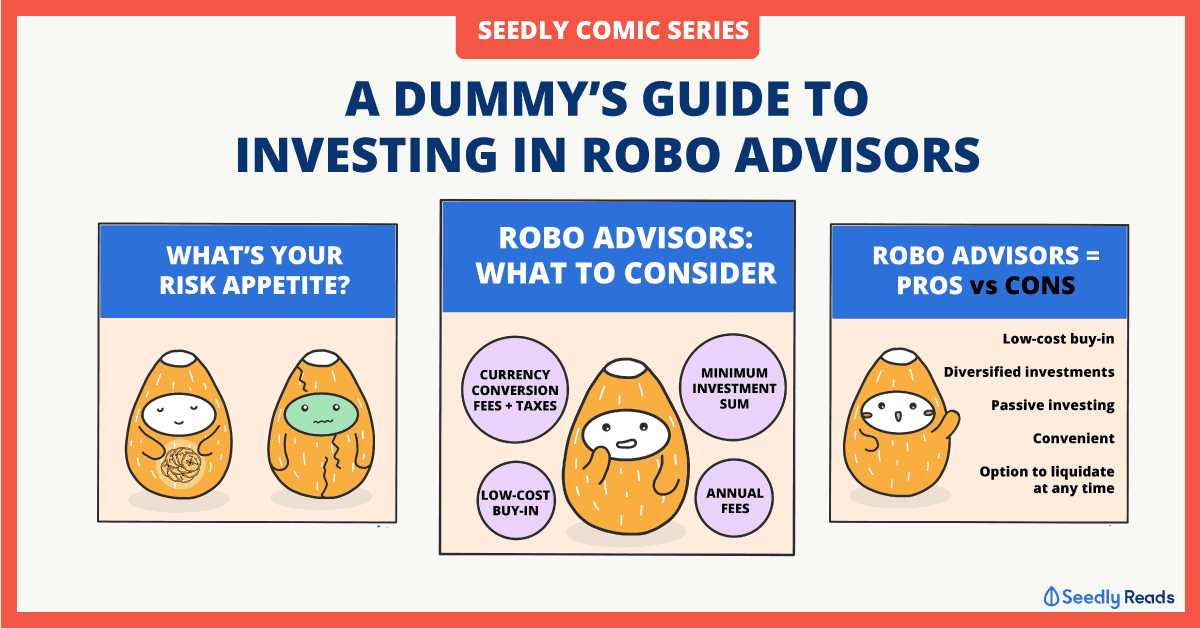 Whether you prefer a detailed comparison of robo advisors or reviews from the Seedly community’s discussion on the topic o help you find the best robo advisors in Singapore — but meantime, here’s a round-up of some fees and minimum investment sums to know across all of Singapore’s robo advisors.