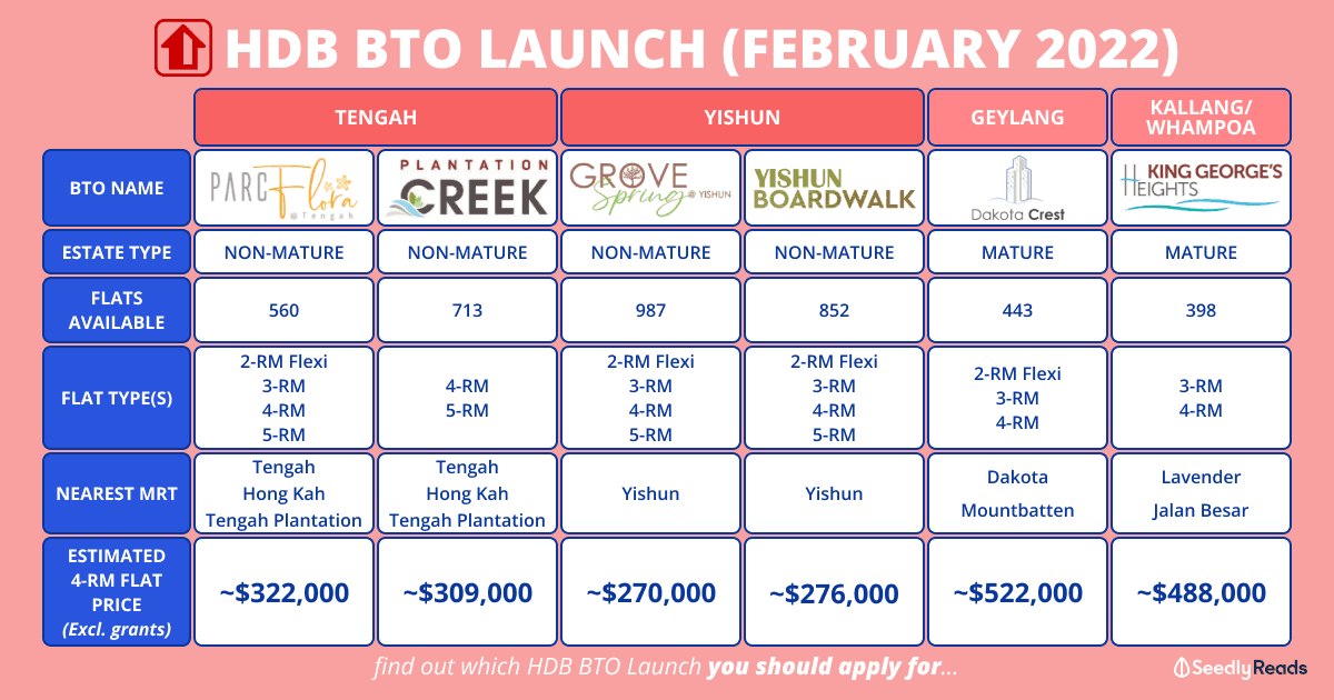 TL;DR: HDB BTO Launch In February 2022 (Tengah, Yishun, Geylang, Kallang/ Whampoa)