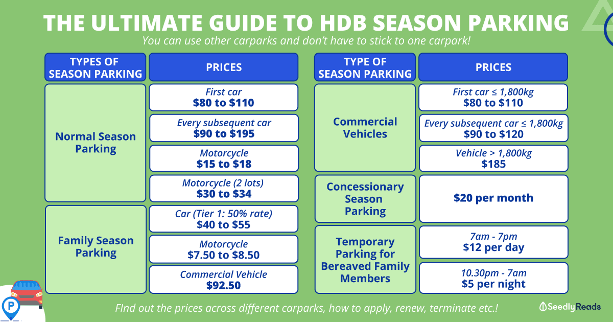 TL;DR: Types of HDB Season Parking, Parking Rates, How to Apply, Check Validity, Renew & Transfer Season Parking