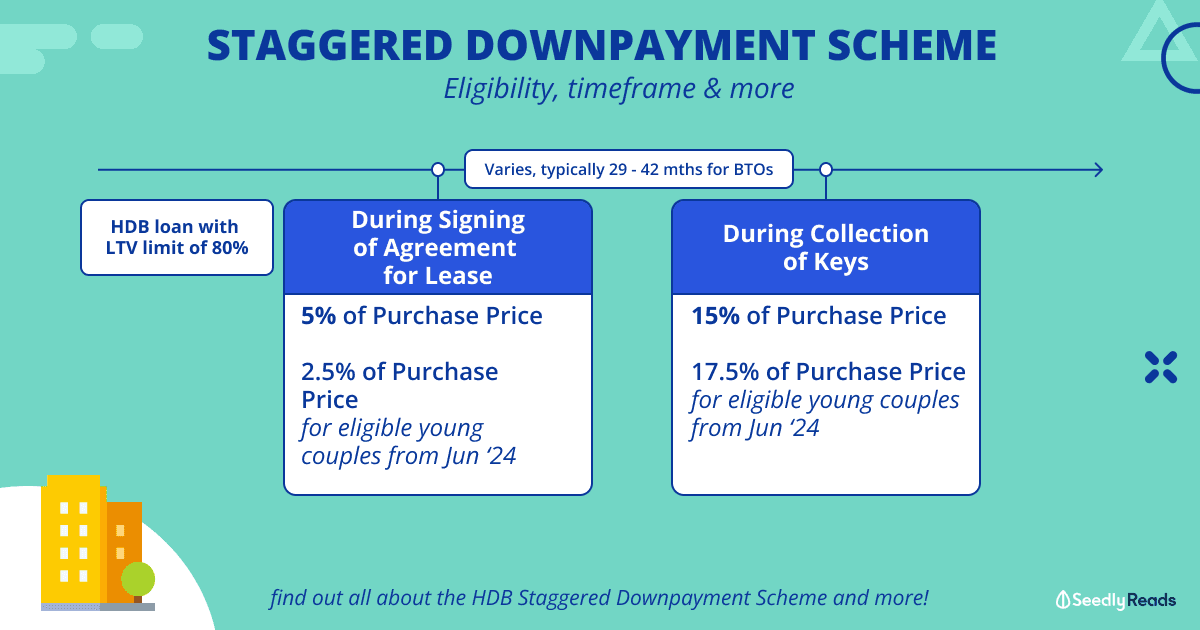 Recently, the government has also announced an enhancement to this scheme effective June 2024 where eligible young couples can pay 2.5% first instead of 5%, before paying the remaining during key collection. This is a great move financially if you play your cards right! But more on that later.