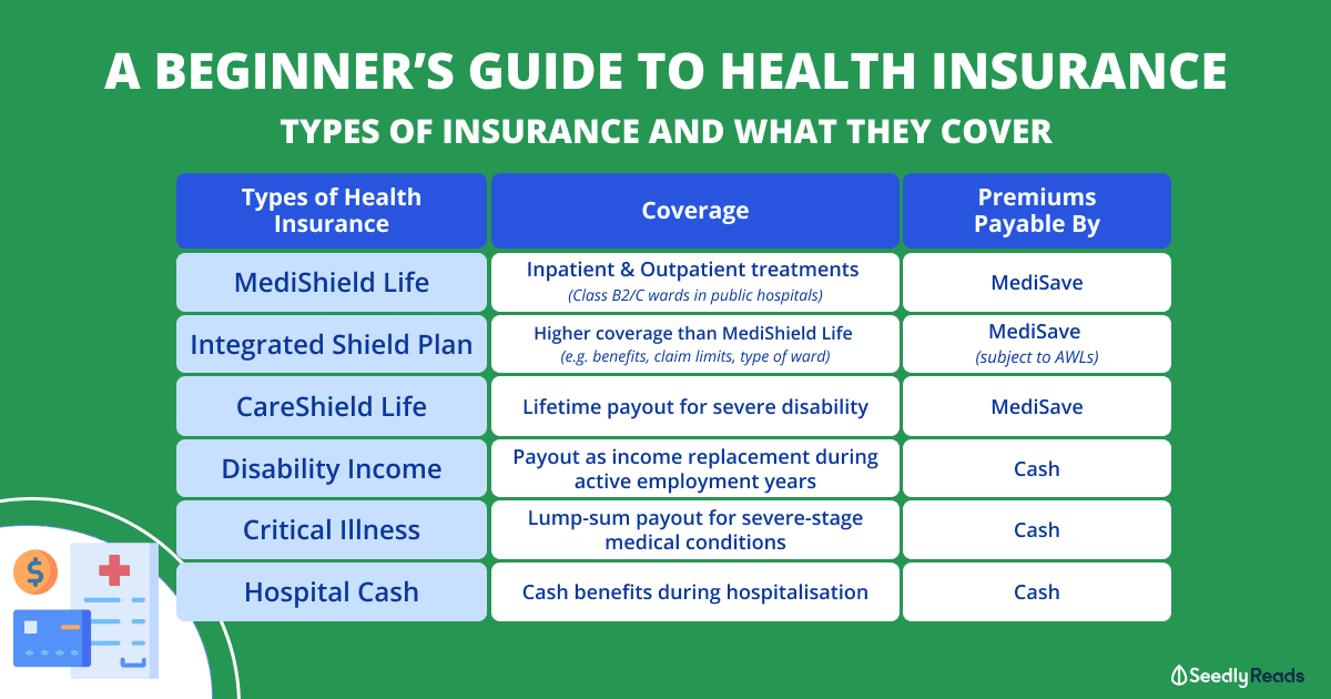 | MediShield Life | Inpatient and outpatient treatments (for up to Class B2/C wards in public hospital) Includes pre-existing conditions | Fully payable via MediSave Family members can also pay premium on behalf |