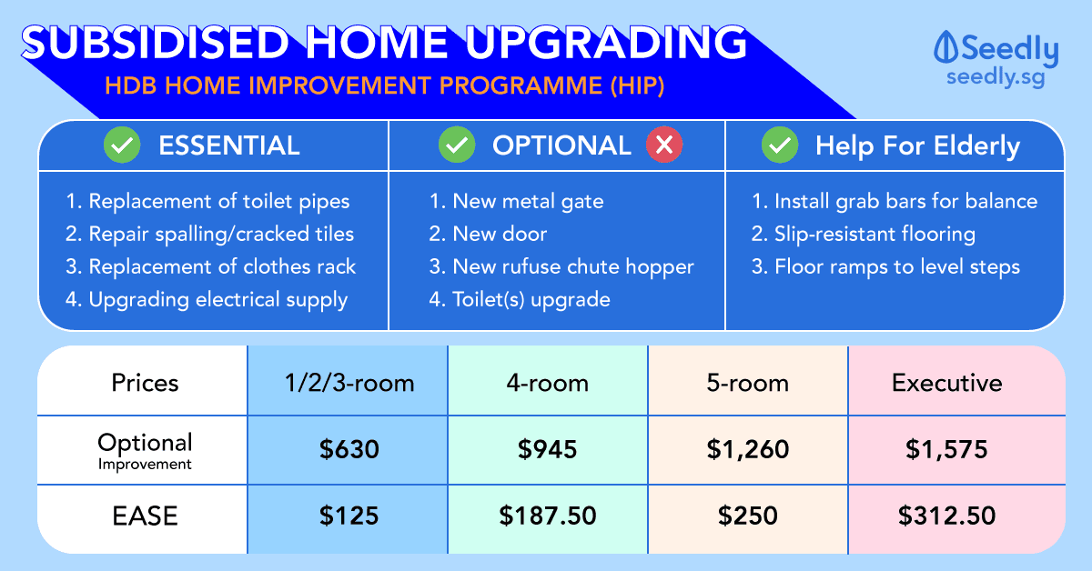 For flats under HIP, we will all be going through these mandatory improvements which are considered necessary for public health, safety, and technical reasons such as: