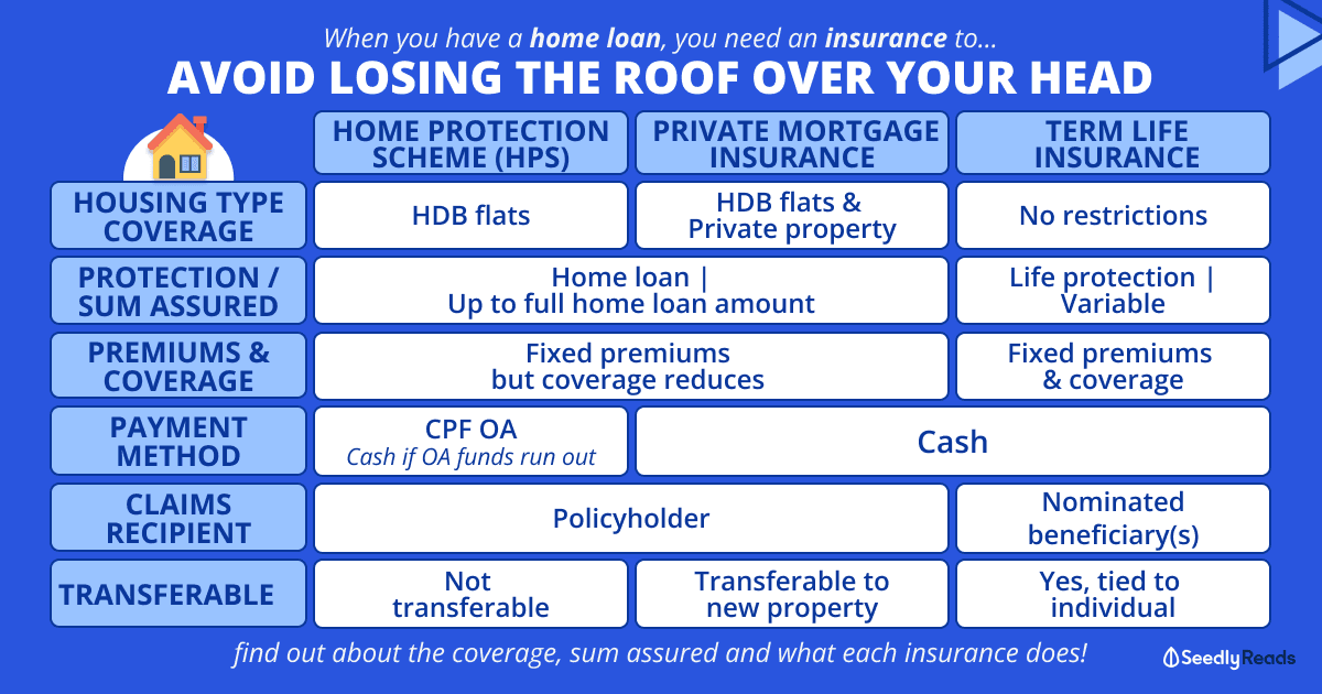 | Transferrable | Not transferrable as HPS is tied to HDB flat | Private mortgage insurance can be transferred to new property | Coverage is tied to the individual and not the property |