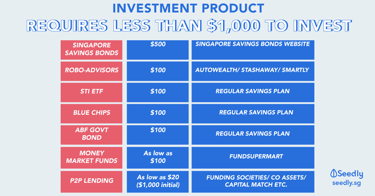 Should you have S$1,000 or lesser to kick off your investment journey, below are some products which can help you “dip your toe in the water”.