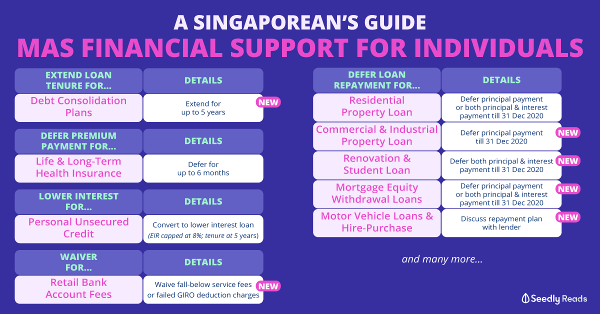 Here are all of the announced MAS relief measures for individuals at a glance: