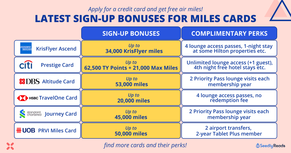 Disclaimer: The cards listed in this article exclude corporate, private, premier, and invite-only credit cards. The information provided by Seedly serves as an educational piece and is not intended to be personalised investment advice. Readers should always do their due diligence and consider their financial goals before purchasing financial products.
