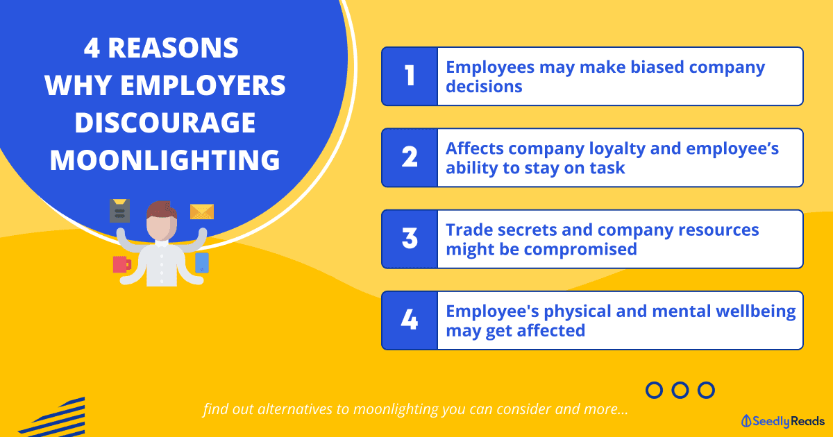 If the employees fall sick, get injured or face burnout due to their side jobs, it will affect their performance in their full-time jobs, which employers would want to avoid.