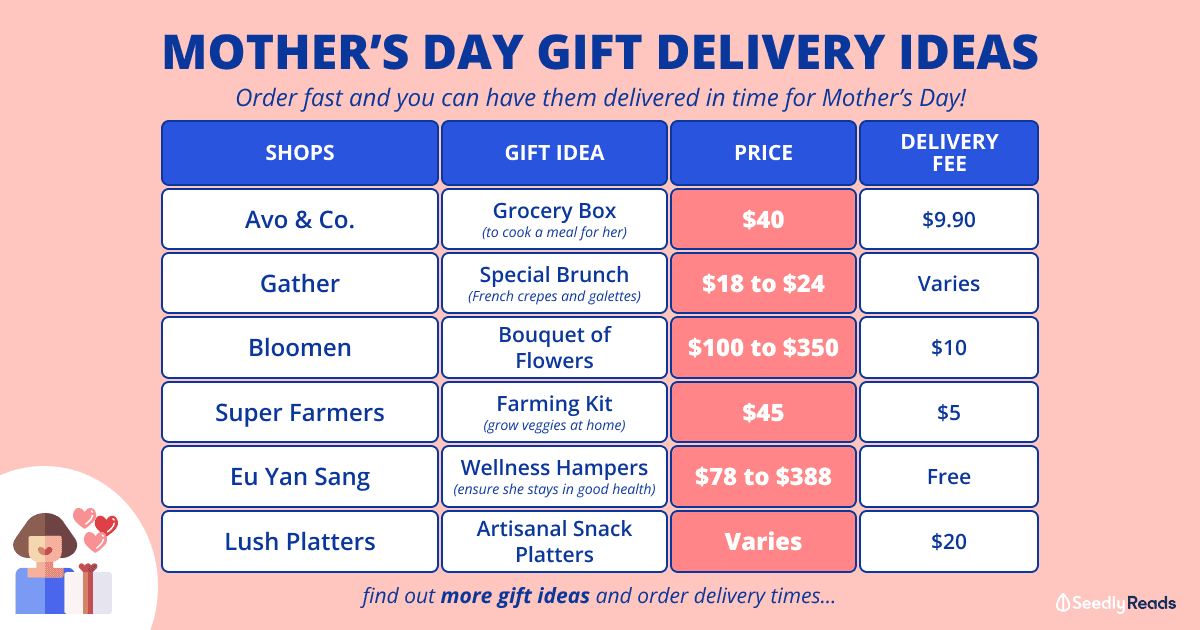 | For Moms Who Love... | Mother's Day Gift Idea | From Which Local Brand? | Price | Delivery Fee | How to Order? |