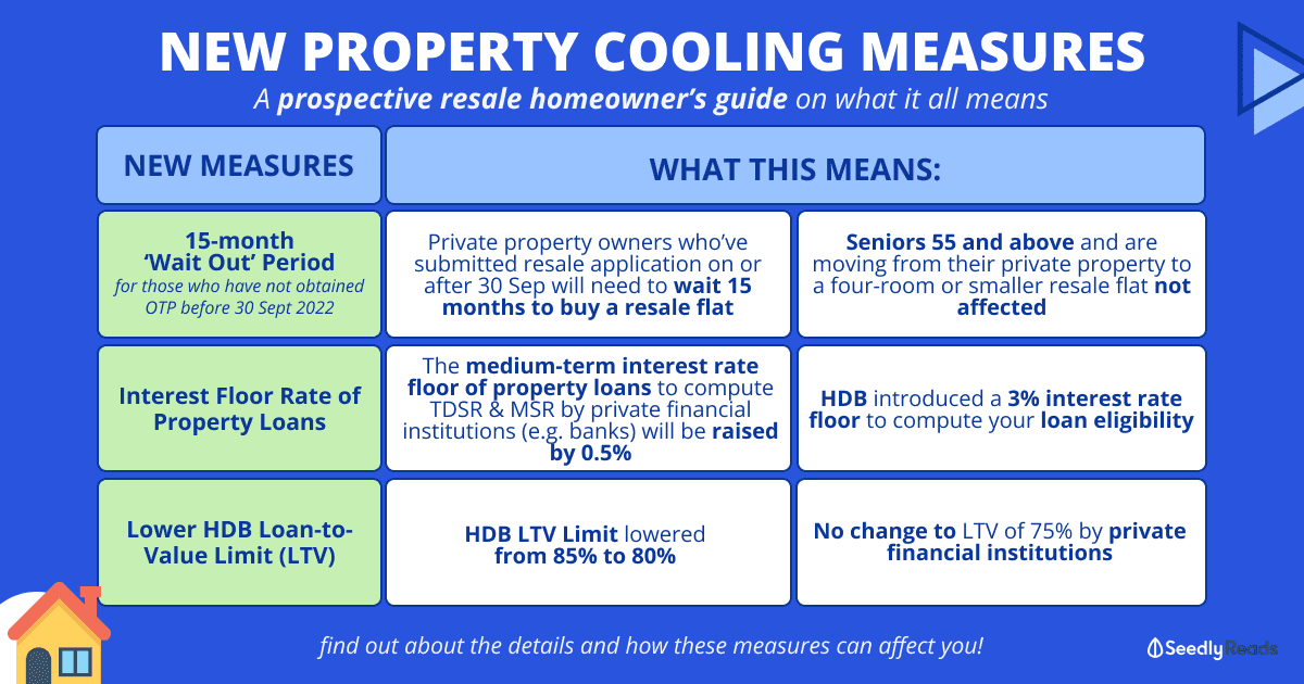 The Housing Development Board (HDB), Ministry of National Development (MND) and Monetary Authority of Singapore (MAS) have announced that starting from 30 September 2022, a slew of property cooling measures will be rolled out to fan off the heat from the resale market.