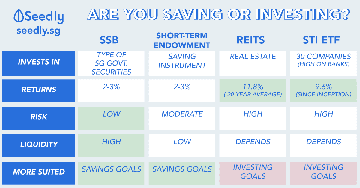 Are You Trying To Save Or Invest? SSB vs REITs vs Short-term Endowment vs STI ETF