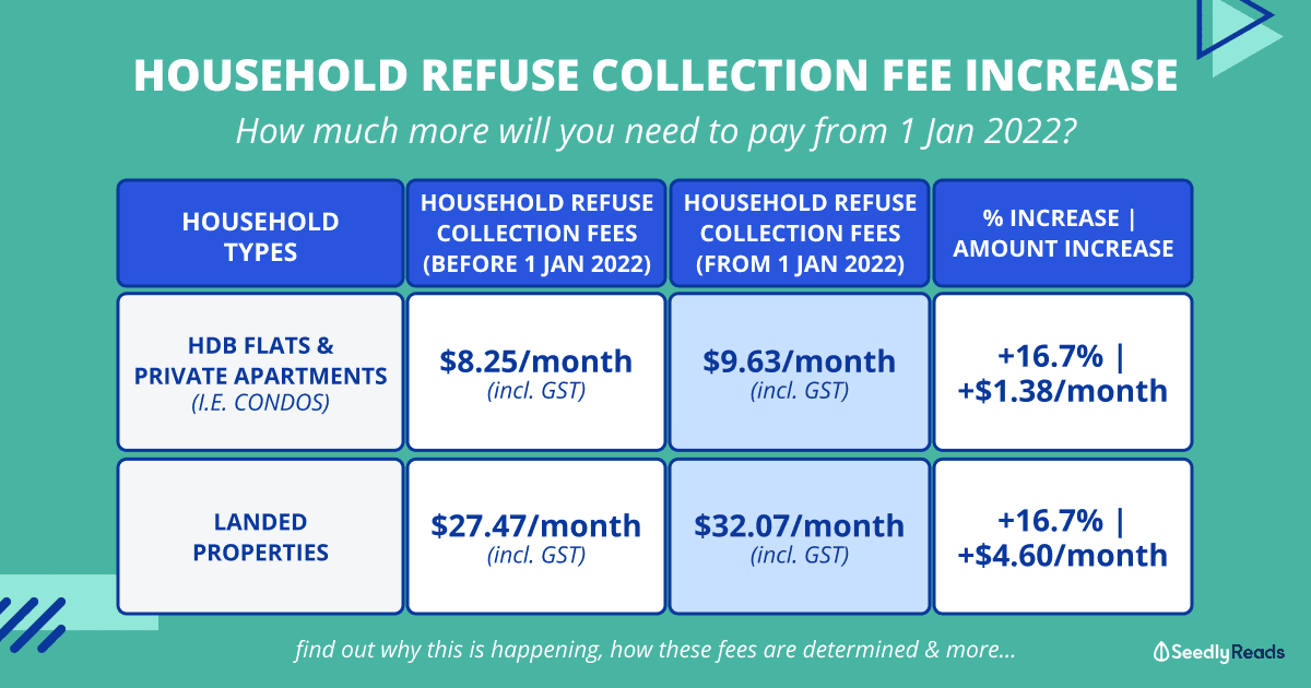 Speaking of household refuse collection, the National Environment Agency (NEA) will be raising the refuse collection fees for households in Singapore from 1 January 2022: