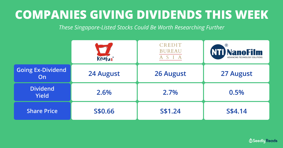 A couple of Singapore-listed companies will be going ex-dividend (XD) during the week.