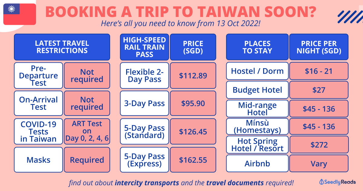 From 13 October 2022, Singaporeans will be able to travel to Taiwan regardless of vaccination status.