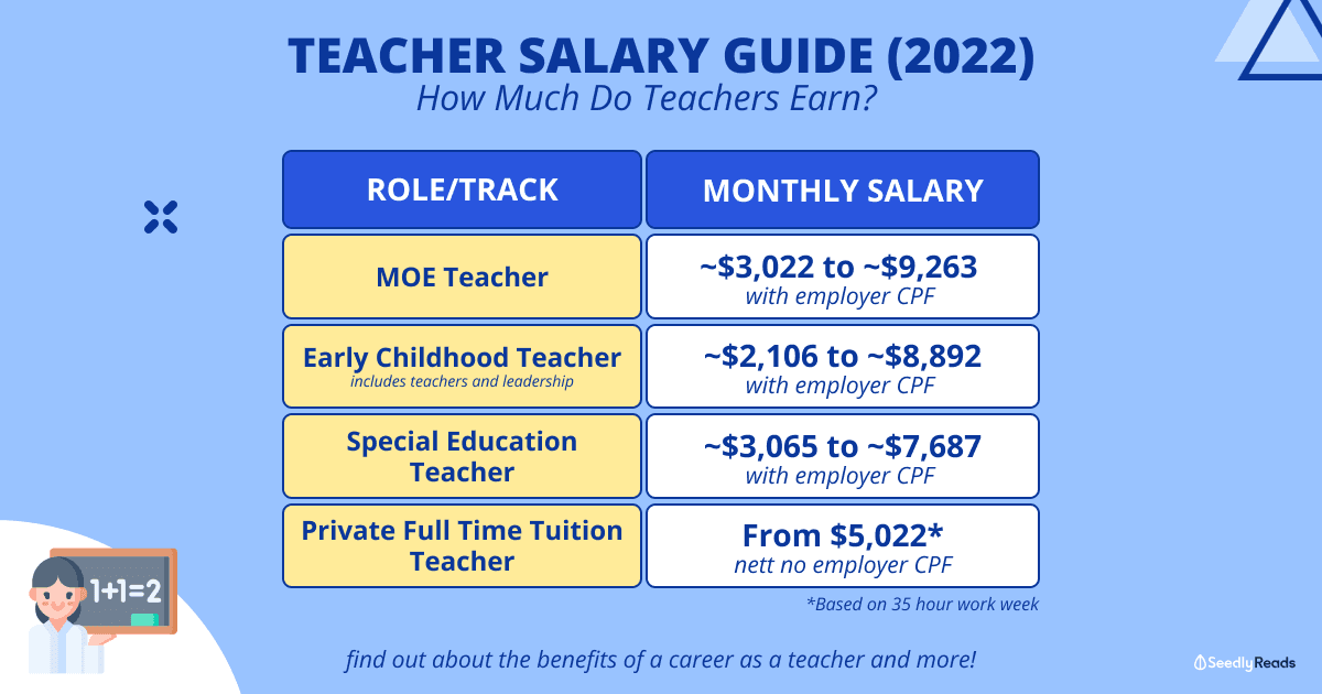 A SPED teacher will get anywhere from ~$3,065 – ~$7,687 a month after CPF.