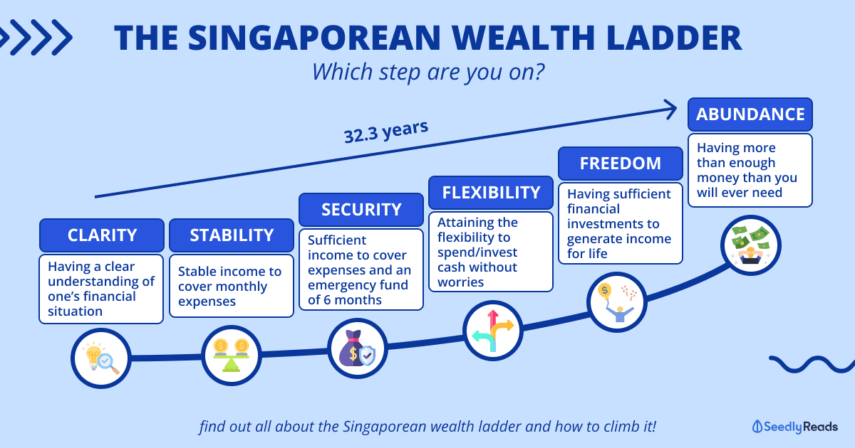 There are six steps to the Singaporean wealth ladder from financial clarity to financial abundance.