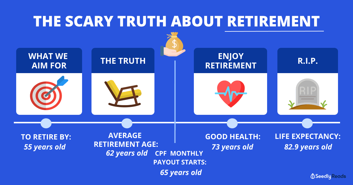 The average age of retirement in Singapore is 62 years old, and CPF monthly payout comes in only at age 65.