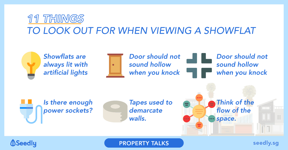 Showflats are always lit with artificial lights, and are permanently bright. It might be difficult to get an idea of how much natural light each room would get. Check the size of the windows and where they’re placed, so you can judge for yourself how much light you would get when the project is completed. Remember to compare it with the facing of the unit you’re considering, to see if it will feel the brunt of the hot sun.