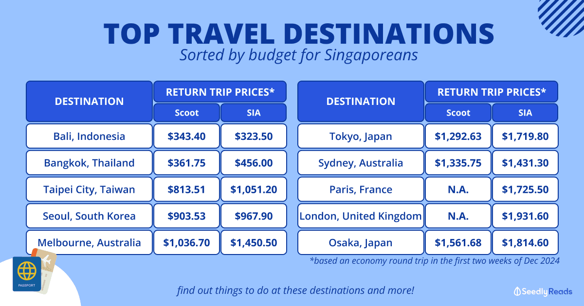 TL;DR: Top Travel Destinations By Budget For Singaporeans
