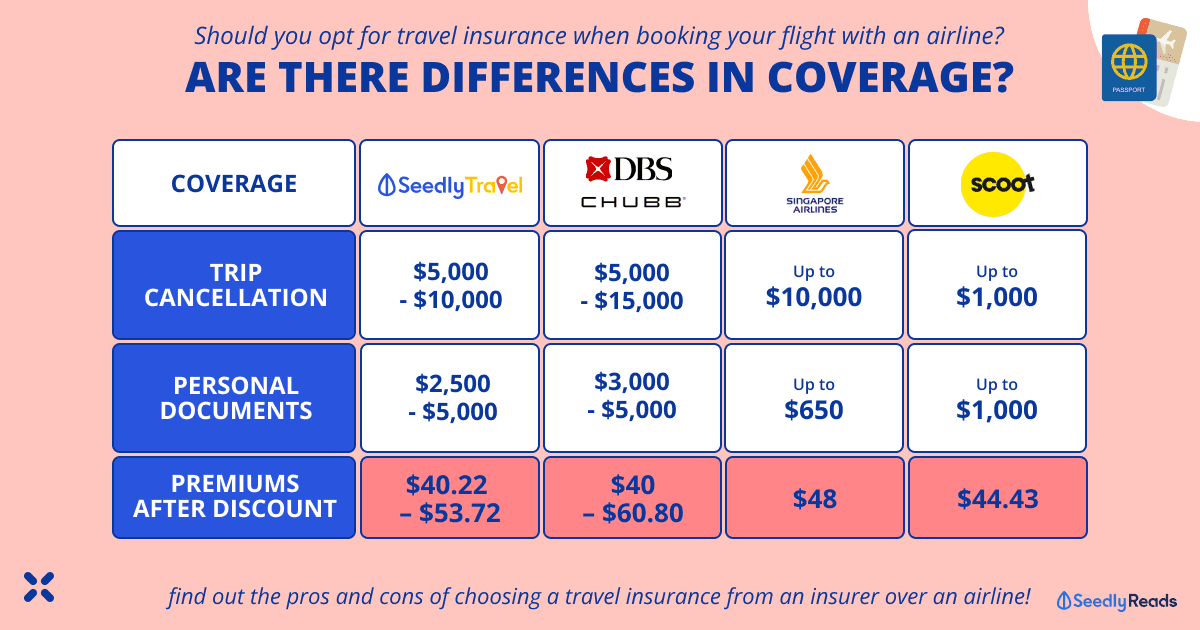 | Benefits | Singapore Airlines | Scoot | Seedly Travel Insurance | DBS Chubb TravellerShield Plus |