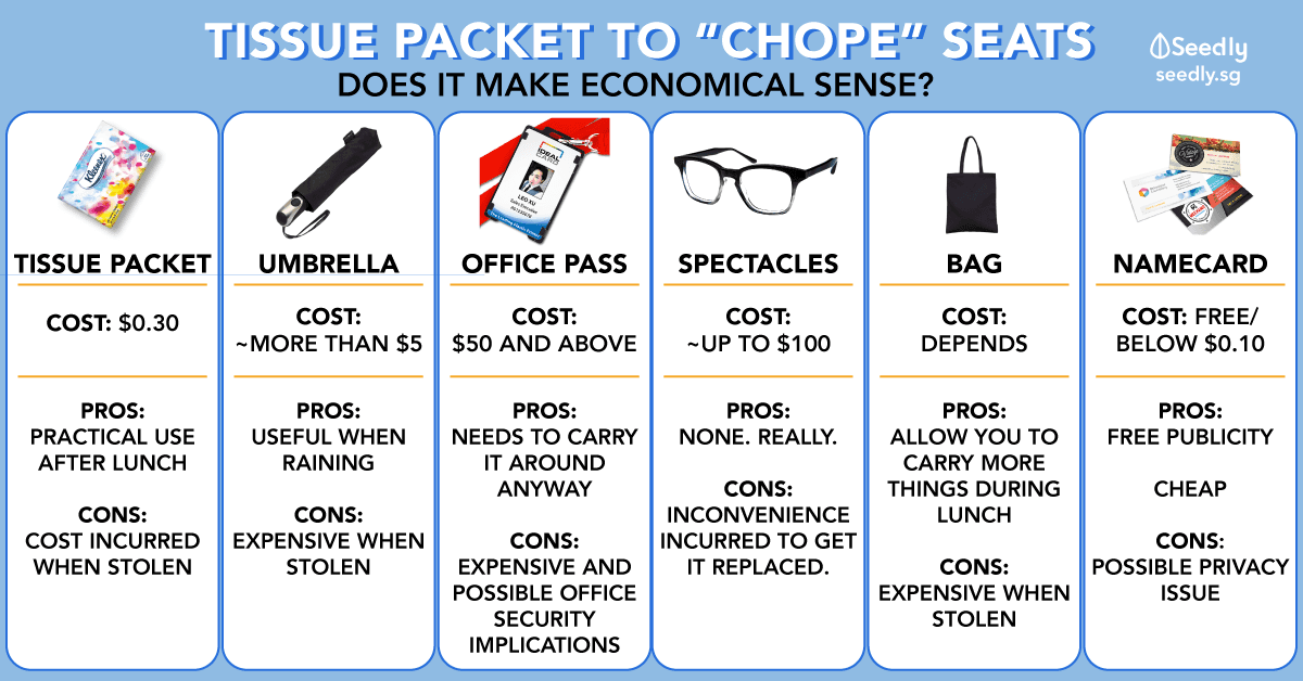 Here are some other popular items that Singaporeans use to reserve their lunchtime seats and how much they cost.