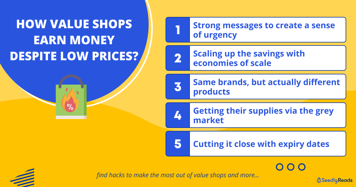 As mentioned earlier, value shops sometimes get their products cheap by buying supplies nearing their expiry date.